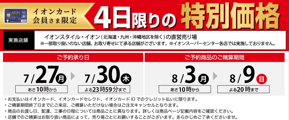 B 8月29日30日 イオンカード会員限定 2日限りの 特別価格 暮らし