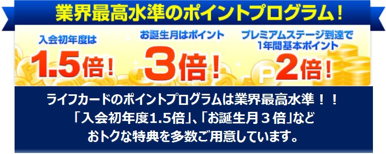 プレミアムステージ 利用金額 200万円以上 基本ポイント付与率 2 0倍 付与例 ご利用金額 1 000円 基本ポイント 1 0ポイント付与 ボーナスポイント 1 0ポイント付与 合計 2 0ポイント付与 ロイヤルステージ 利用金額 100万円以上 200万円未満 基本. プレミアムステージ 1 0 2 0倍 ステージ制プログラムのステージは ライフカードの利用額に応じて4段階に分類されています スペシャルステージにランクアップしても ライフカードのポイント還元率は0 75 であるため ポイント還元率が良いとは言えません ライフカードでポイント. プレミアムステージ 1 0 2 0倍 プログラム期間の利用金額に関わらず ライフカードを発行してから1年間はスペシャルステージが適用されます ライフカードを利用している方は 2年目以降のポイント還元率を高くするために ライフカードに支払いをまとめましょう 適用ステージは.