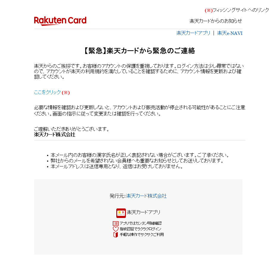 続 注意喚起 ついに楽天カード株式会社を装うフィッシングメールが